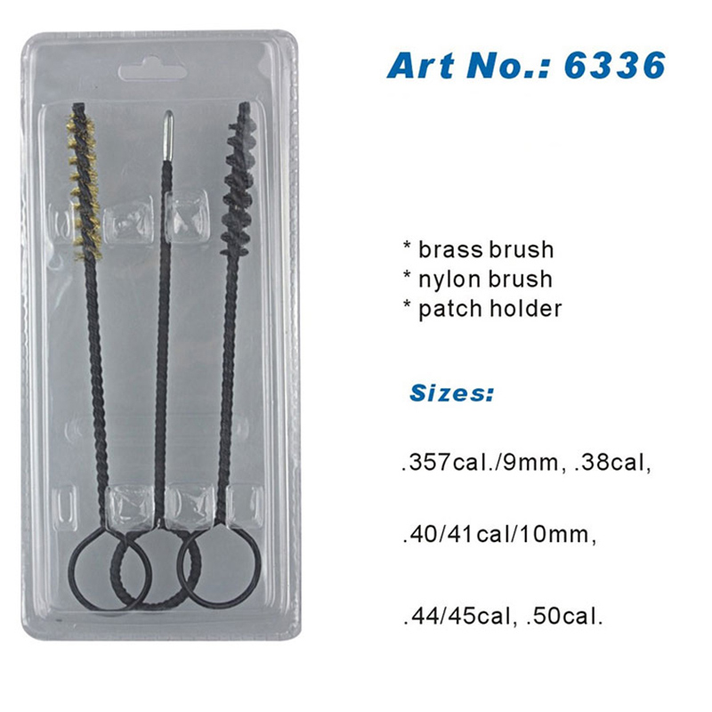 3 பிசிக்கள் கைத்துப்பாக்கி சுத்தம் செய்யும் கிட், இரட்டை கொப்புளத்தில் நிரம்பியுள்ளது. ஒரு பித்தளை துளை சுத்தம் செய்யும் தூரிகை, ஒரு நைலான் துளை சுத்தம் செய்யும் தூரிகை மற்றும் ஒரு துளையிடப்பட்ட பேட்ச் ஹோல்டர். வசதியான மற்றும் பயனுள்ள.