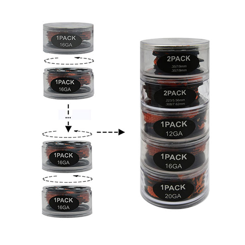 துப்பாக்கி சுத்தப்படுத்தும் துளை கயிறு பாம்பு பல அடுக்கு பேக்.DIY. காலிபர்ஸ் & அளவுகள் சேர்க்கை கன் க்ளீனிங் போர் பாம்பு கயிறுகள் மல்டிலேயர் கலவை, இந்த பல அடுக்கு சிலிண்டர் பல்வேறு காலிபர்களில் பல துளை பாம்புகளின் துப்பாக்கி சுத்தப்படுத்தும் கயிறுகளால் ஆனது. சேமிப்பிற்கும் சேகரிப்பிற்கும் வசதியானது. உள் மையத்தை கயிறு முறுக்கு மையமாக மட்டுமல்லாமல், இழுக்கும் கைப்பிடியாகவும் பயன்படுத்தலாம். அத்தகைய ஒரு உருளை தொகுப்பு ஒரு தொகுப்பை விட எளிதாக கண்டுபிடிக்க முடியும். இந்த வடிவமைப்பு Rotchi நிறுவனத்தால் காப்புரிமை பெற்றது.