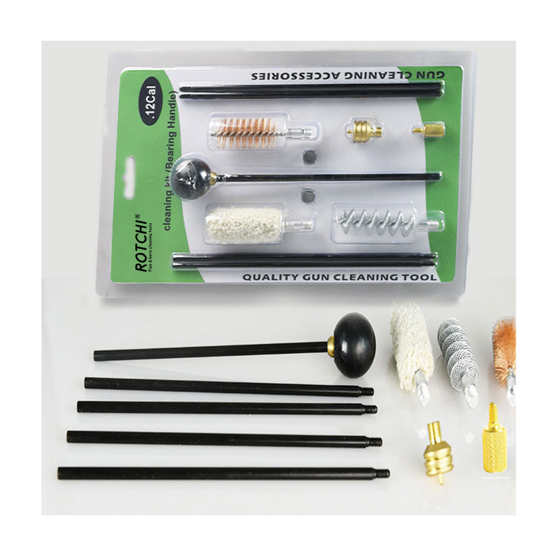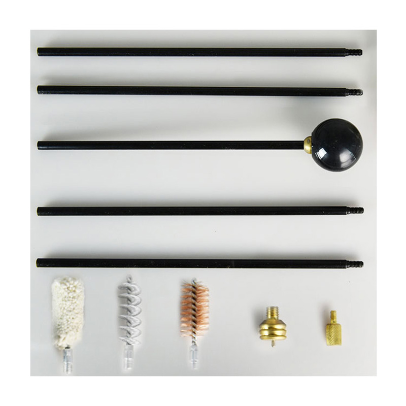 ஷாட்கனுக்கான தொழில்முறை துப்பாக்கி சுத்தம் செய்யும் கிட். அதன் பந்து கைப்பிடி உங்களுக்கு வசதியான கைப்பிடியை வழங்குகிறது. துல்லியமான இயந்திரத் தண்டுகள் வலுவாகவும், நீளமாகவும், நேராகவும், மிருதுவாகவும், இணைப்புகளில் படியில்லாமல் இருக்கும்.