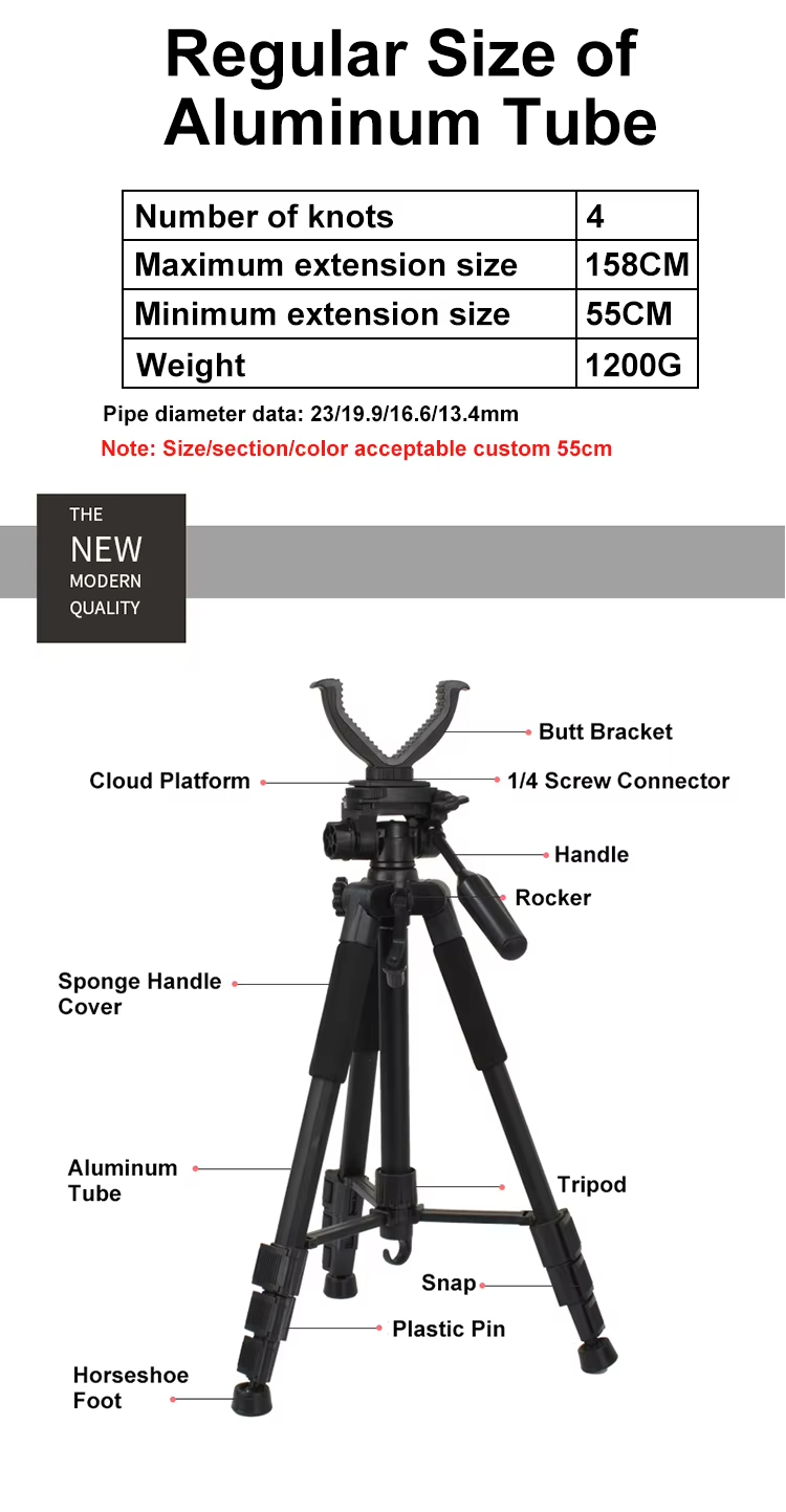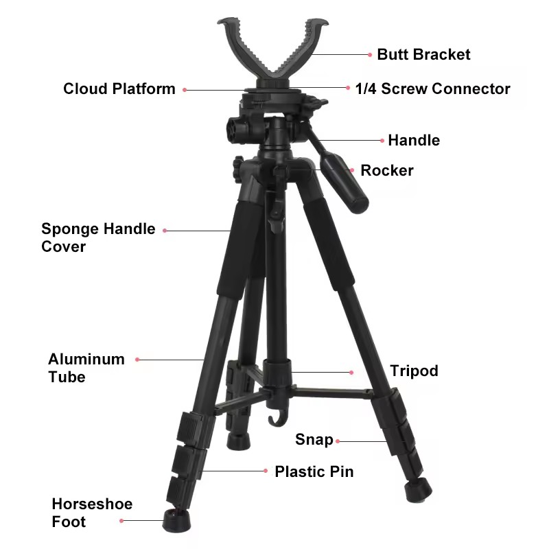அலுமினியம் முக்காலி, நீடித்த துப்பாக்கி மவுண்ட், மின்சாரம் சரிசெய்யக்கூடிய உயரம்