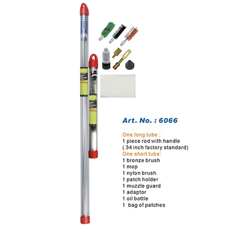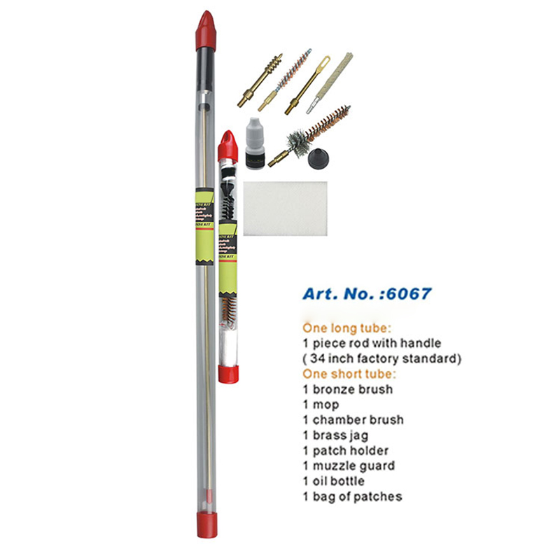 குழாய் நிரம்பிய துப்பாக்கி சுத்திகரிப்பு கிட் பல நன்மைகள் உள்ளன: சுழலும் அலுமினிய கைப்பிடி கொண்ட ஒரு துண்டு நீண்ட கம்பி, வெட்டு இல்லை; பல்வேறு தூரிகைகள் மற்றும் பாகங்கள்; ஒரு சிறிய நீண்ட குழாயில் நிரம்பியுள்ளது. துப்பாக்கியை சுத்தம் செய்வதற்கு அதிக தேவைகள் உள்ள பயனர்களுக்கு, இது நல்ல தேர்வாகும்.